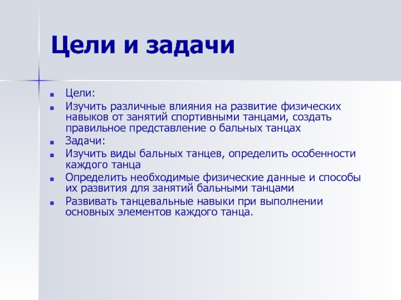 занятий спортивными танцами, создать правильное представление о бальных танцах