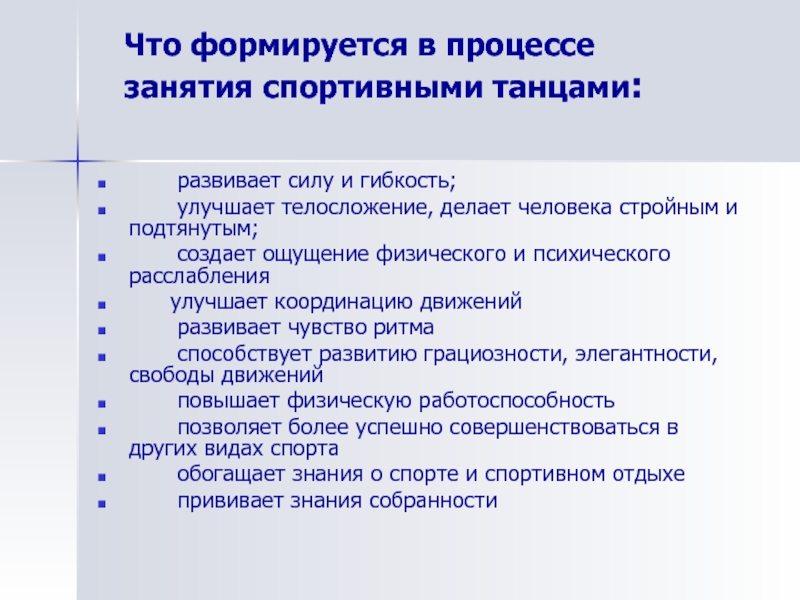 Слайд 25Что формируется в процессе занятия спортивными танцами: