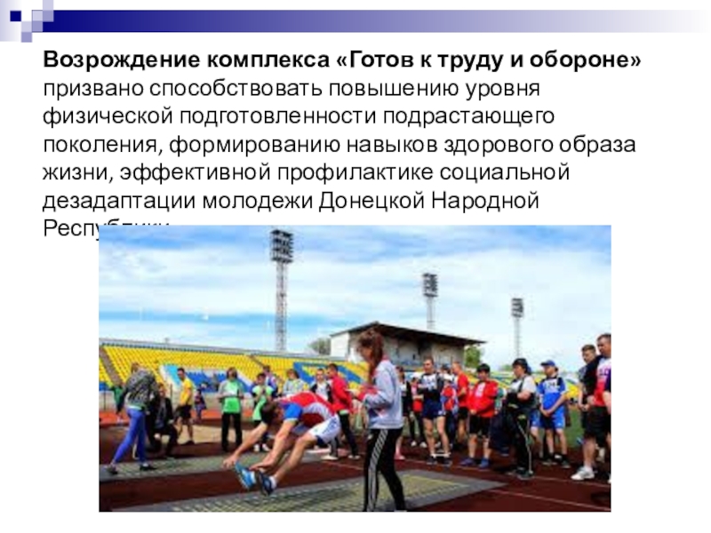 Слайд 3Возрождение комплекса «Готов к труду и обороне» призвано способствовать повышению уровня