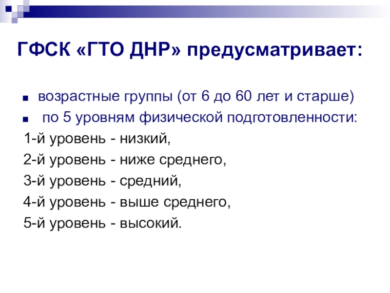 Слайд 10ГФСК «ГТО ДНР» предусматривает: