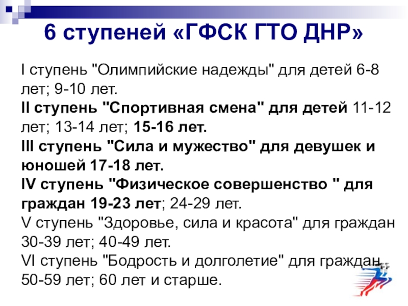 Слайд 126 ступеней «ГФСК ГТО ДНР»