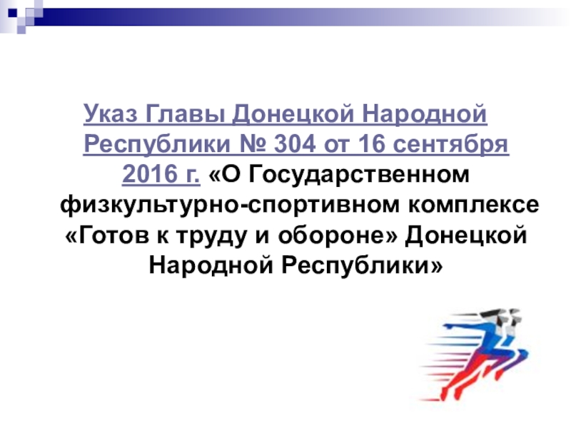 Слайд 2Указ Главы Донецкой Народной Республики № 304 от 16 сентября 2016