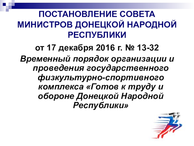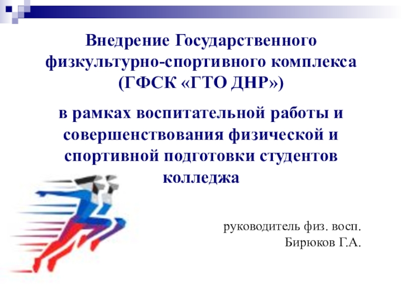 Слайд 1Внедрение Государственного физкультурно-спортивного комплекса (ГФСК «ГТО ДНР»)