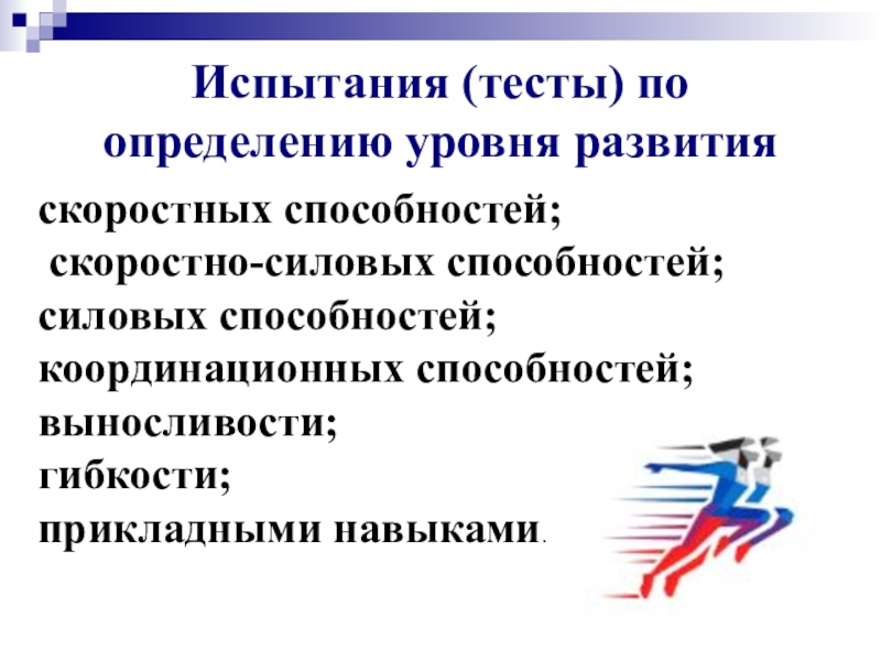 подготовленности населения на основании выполнения видов испытаний (тестов) и нормативов, позволяющих определить уровень развития физических качеств и прикладных двигательных умений и навыков в соответствии с половыми и возрастными особенностями организма человека.