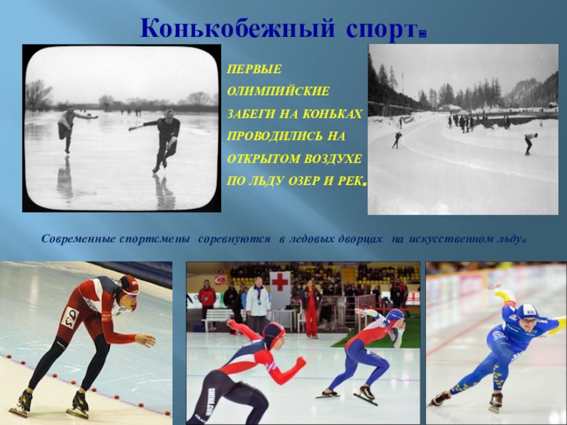 Современные спортсмены соревнуются в ледовых дворцах на искусственном льду.