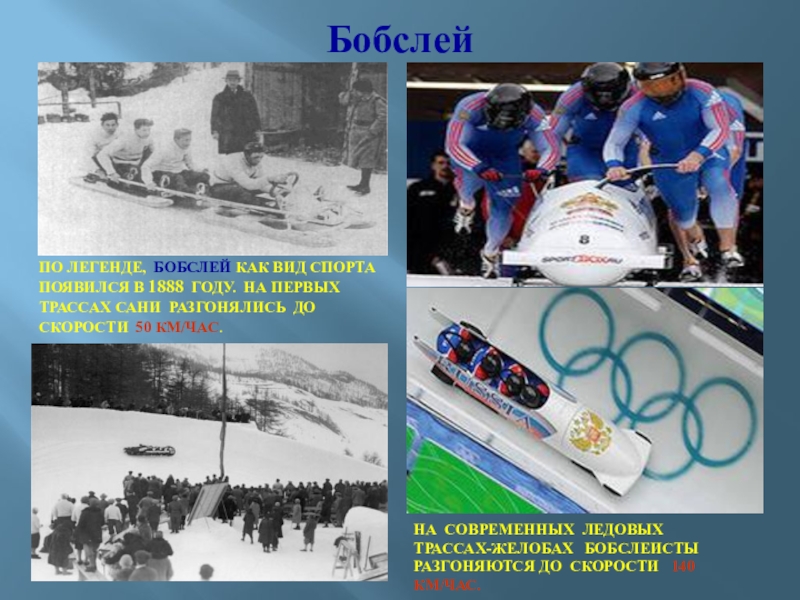 На современных ледовых трассах-желобах бобслеисты разгоняются до скорости 140 км/час.