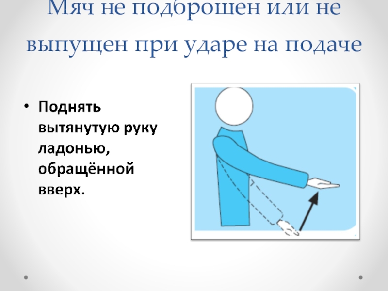 Слайд 11Мяч не подброшен или не выпущен при ударе на подаче