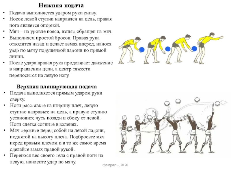 Подставляйте предплечья под мяч, но не наносите по нему удара. Стремитесь направить мяч в заранее намеченную цель.