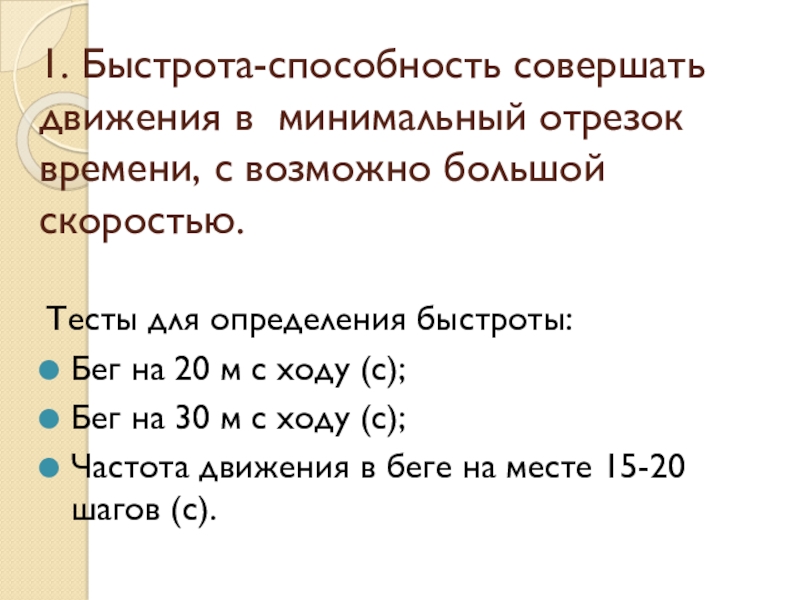 Скоростная выносливость – сочетание быстроты и выносливости. Тест: Бег 300 м, 500 м. ;