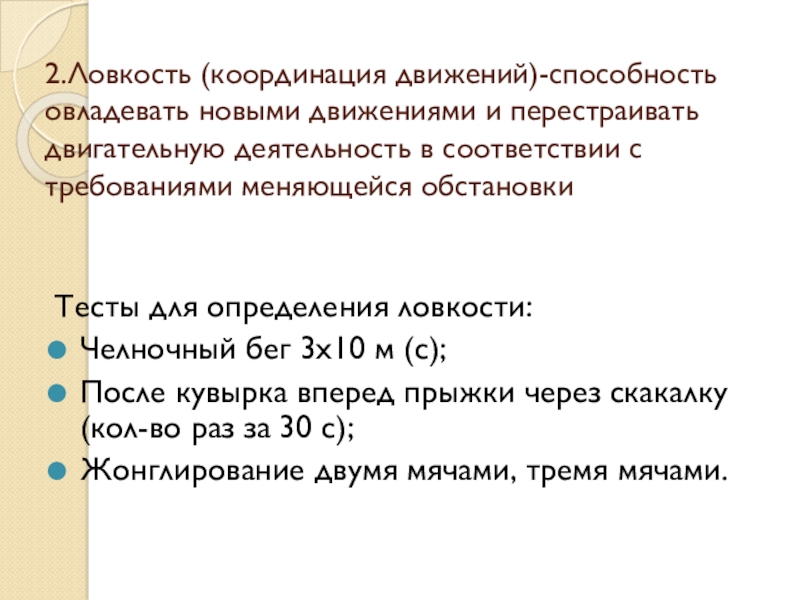 Скоростно – силовая выносливость способность длительно выполнять сложно – координационные движения с критической скоростью и максимальным напряжением мышц. Тест: Прыжки через скакалку в течение 30 с., 1мин.