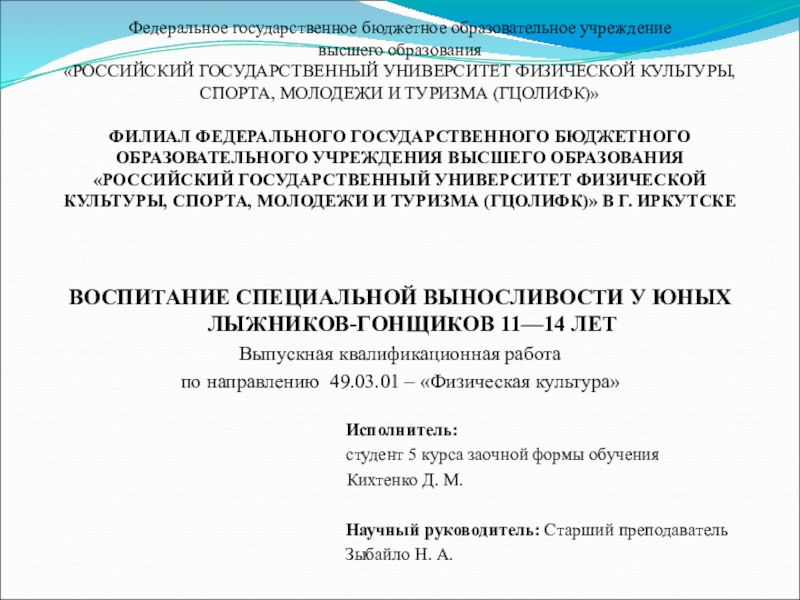 ВОСПИТАНИЕ СПЕЦИАЛЬНОЙ ВЫНОСЛИВОСТИ У ЮНЫХ ЛЫЖНИКОВ-ГОНЩИКОВ 11—14 ЛЕТ