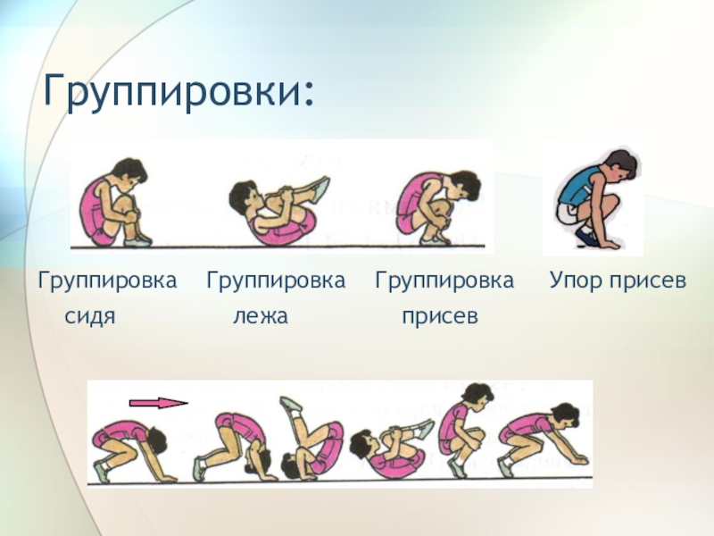 Группировки:Группировка сидяГруппировка лежаГруппировка присев Упор присев