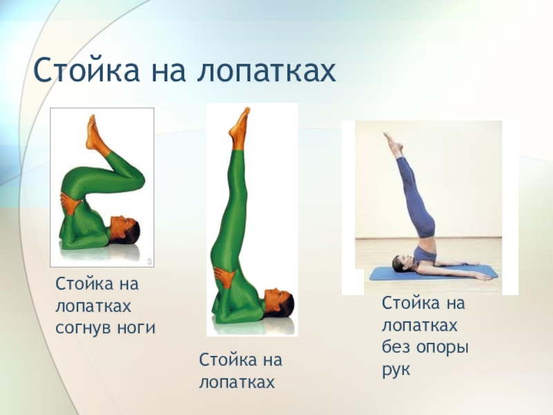 Стойка на лопаткахСтойка на лопатках согнув ногиСтойка на лопаткахСтойка на лопатках без опоры рук