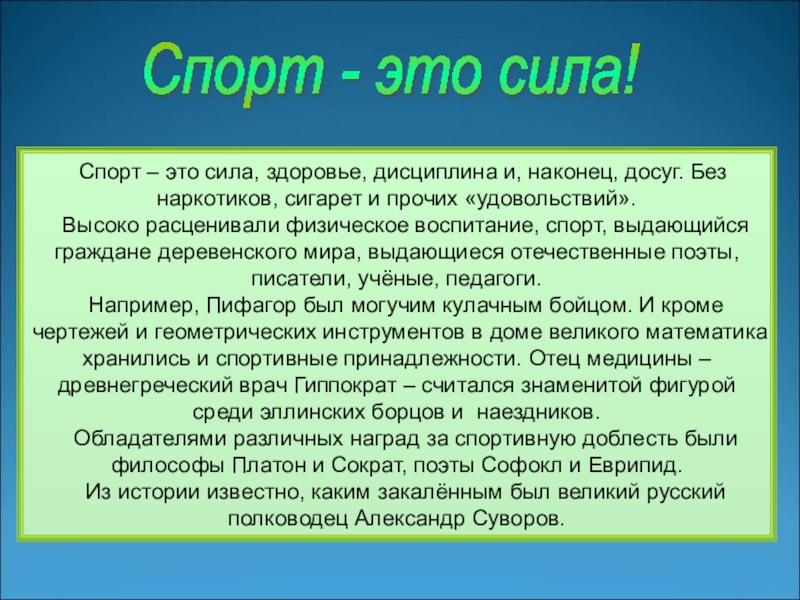 Это сайт презентаций, где можно хранить и обмениваться своими презентациями, докладами, проектами, шаблонами в формате PowerPoint с другими пользователями. Мы помогаем школьникам, студентам, учителям, преподавателям хранить и обмениваться учебными материалами.