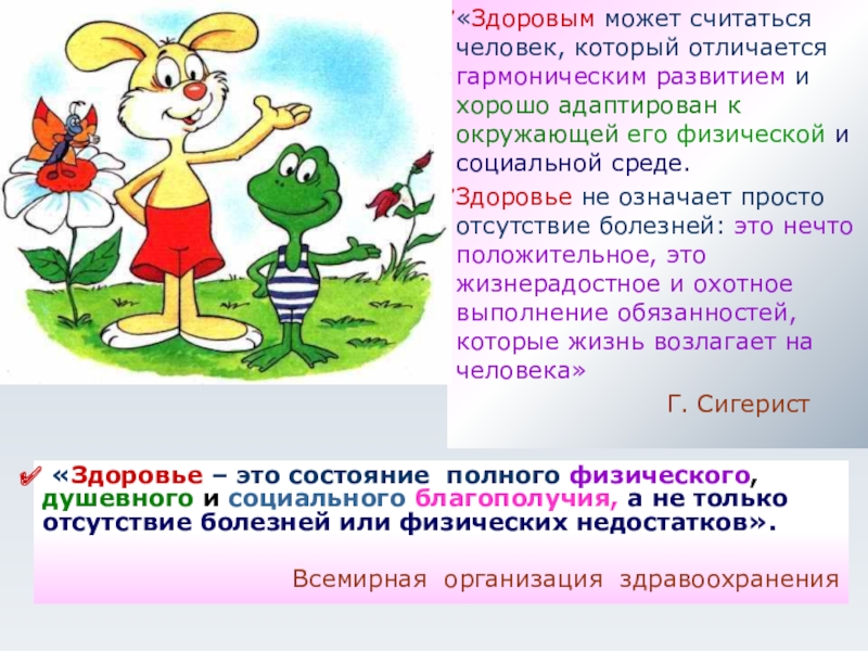 «Здоровье – это состояние полного физического, душевного и социального благополучия, а не только отсутствие болезней или физических недостатков».