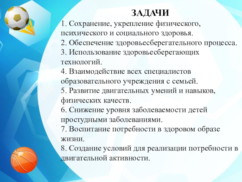 1. Сохранение, укрепление физического, психического и социального здоровья.