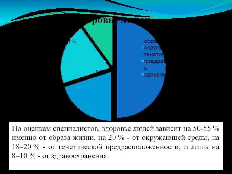 Слайд 4По оценкам специалистов, здоровье людей зависит на 50-55 % именно от образа