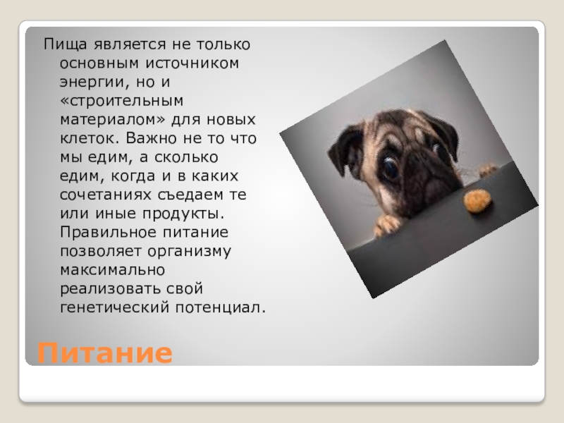 Пища является не только основным источником энергии, но и «строительным материалом»
