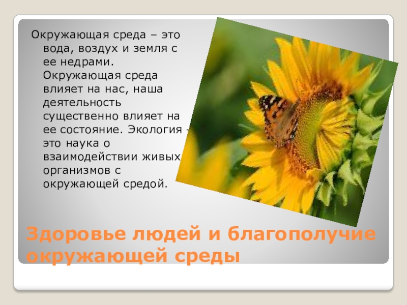 Слайд 18Здоровье людей и благополучие окружающей среды