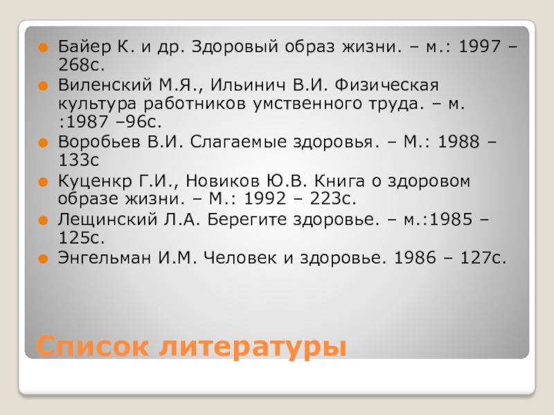 Байер К. и др. Здоровый образ жизни. – м.: 1997