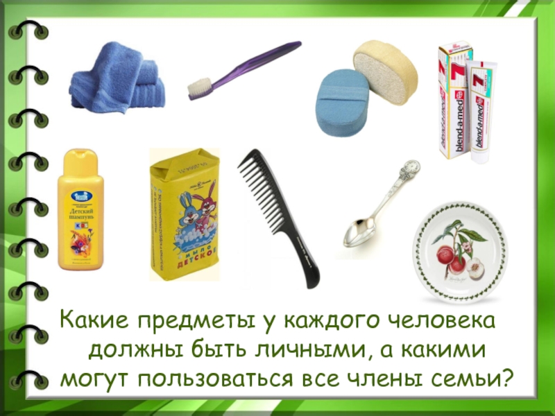 Слайд 22Какие предметы у каждого человека должны быть личными, а какими могут