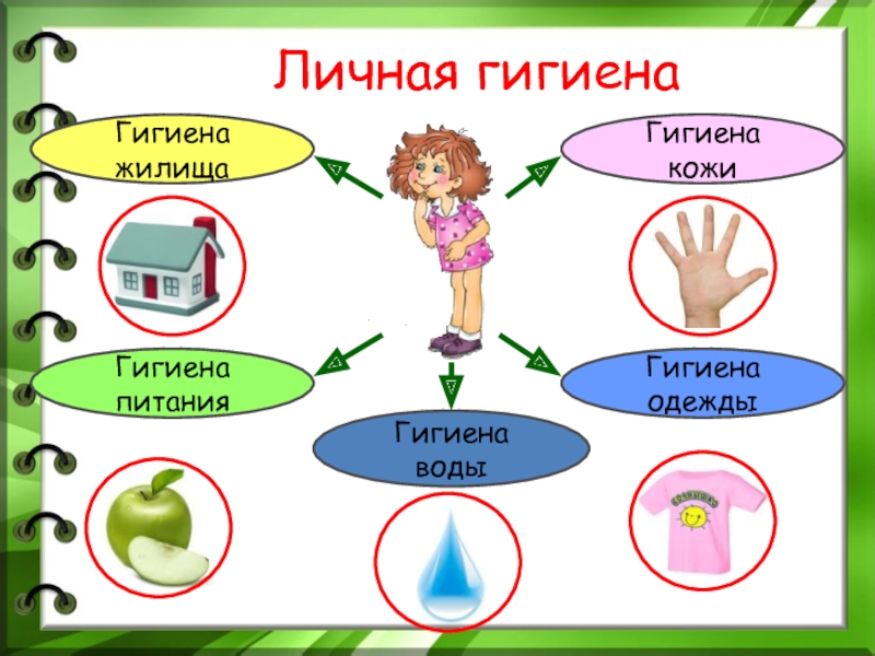 Личная гигиенаГигиена кожиГигиена питанияГигиена одеждыГигиена водыГигиена жилища