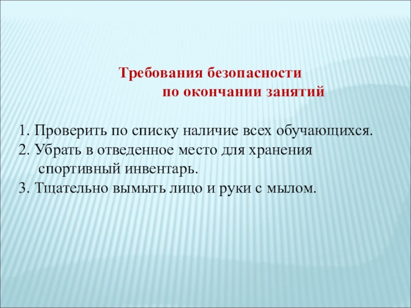 Слайд 29Требования безопасности перед началом занятий
