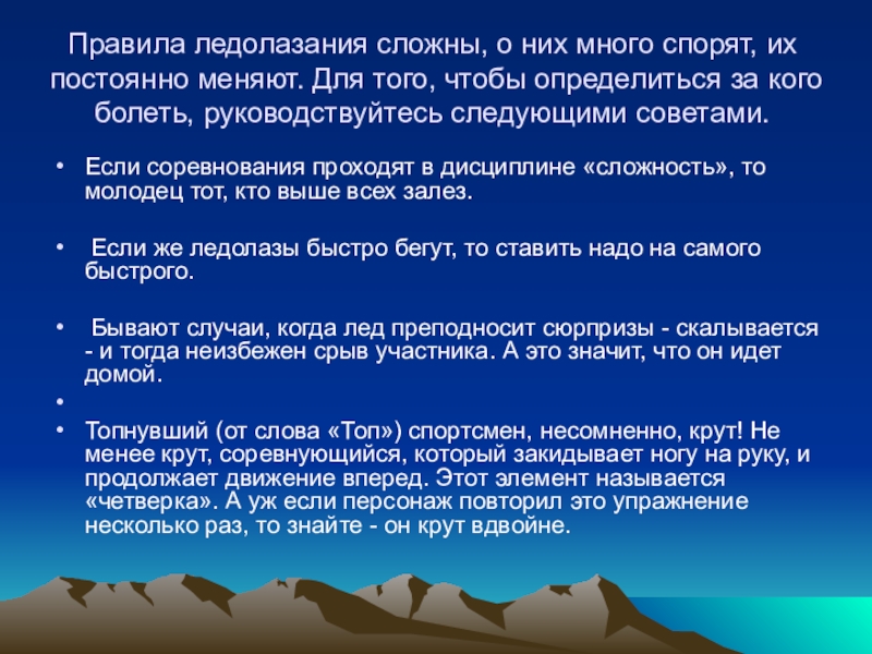 Если соревнования проходят в дисциплине «сложность», то молодец тот, кто выше всех залез.
