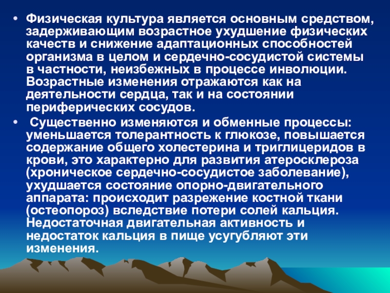 Слайд 10Физическая культура является основным средством, задерживающим возрастное ухудшение физических качеств и