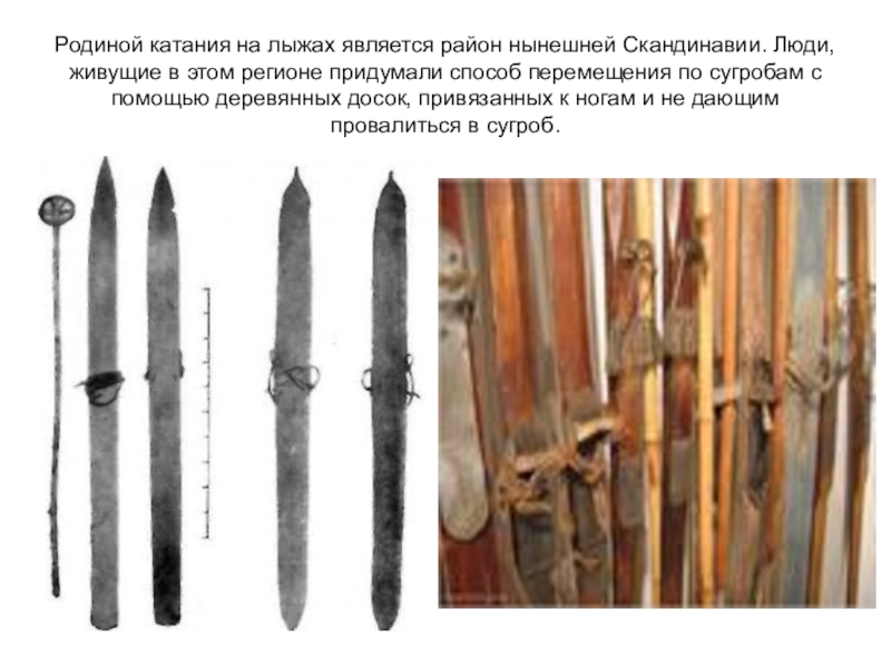 Слайд 2Родиной катания на лыжах является район нынешней Скандинавии. Люди, живущие в