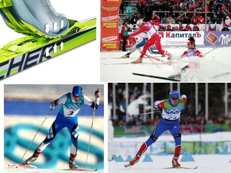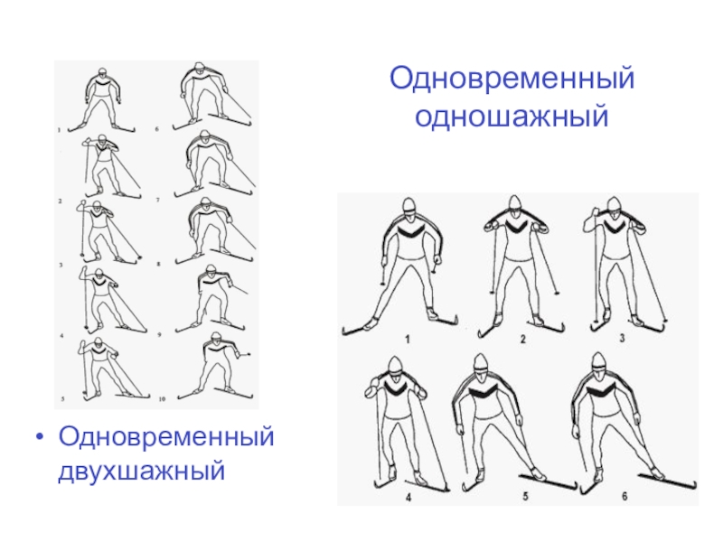 Слайд 6В 70 годы стали применять полуконьковый ход, когда одна лыжа находится