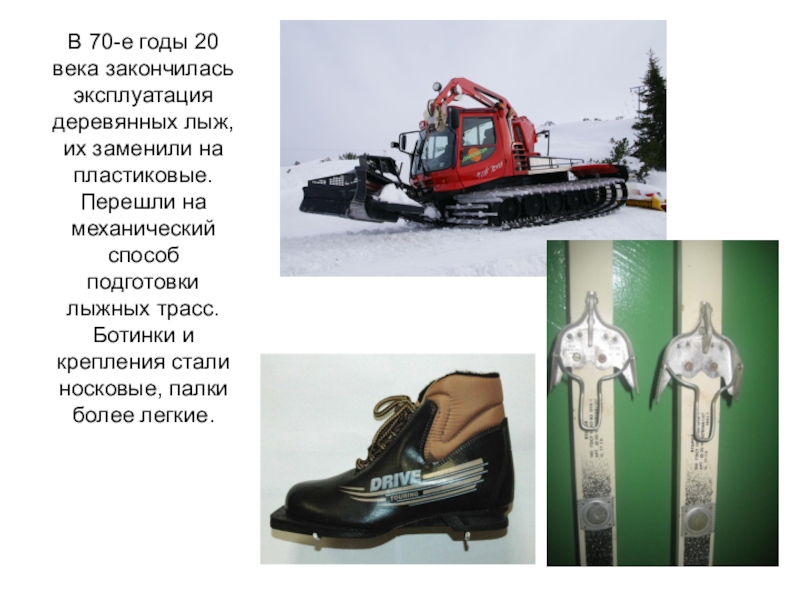 Слайд 5В 70-е годы 20 века закончилась эксплуатация деревянных лыж, их заменили