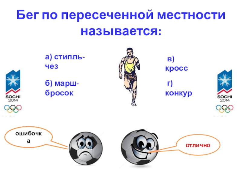 Бег по пересеченной местности называется:а) стипль-чезб) марш-бросок в) кросс г) конкур