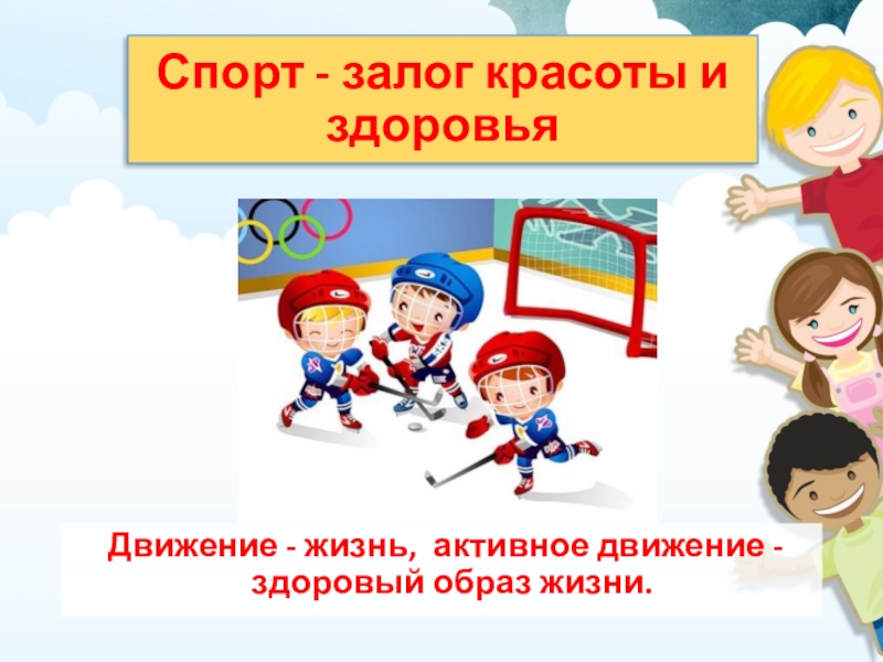 Спорт - залог красоты и здоровья Движение - жизнь, активное движение - здоровый образ жизни.