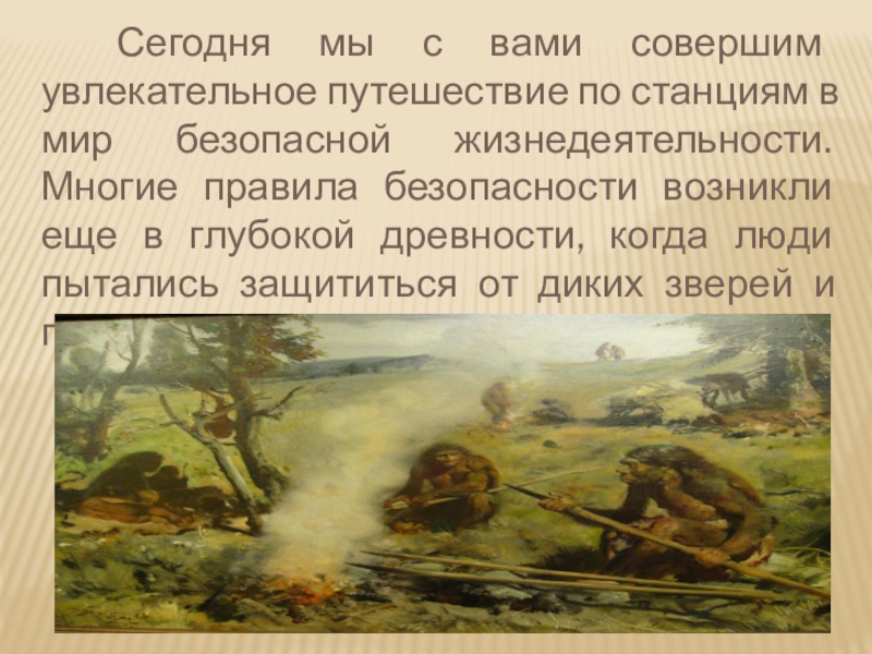 в мир безопасной жизнедеятельности. Многие правила безопасности возникли еще в глубокой древности, когда люди пытались защититься от диких зверей и природных явлений.