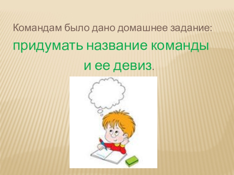 Слайд 12 Командам было дано домашнее задание: