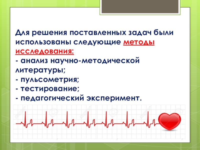 Слайд 7Для решения поставленных задач были использованы следующие методы исследования: