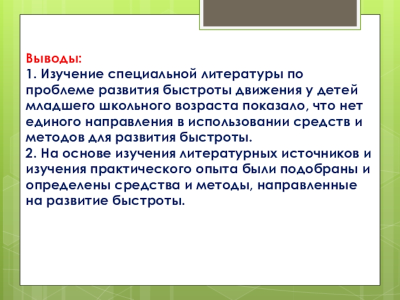 1. Изучение специальной литературы по проблеме развития быстроты движения у детей