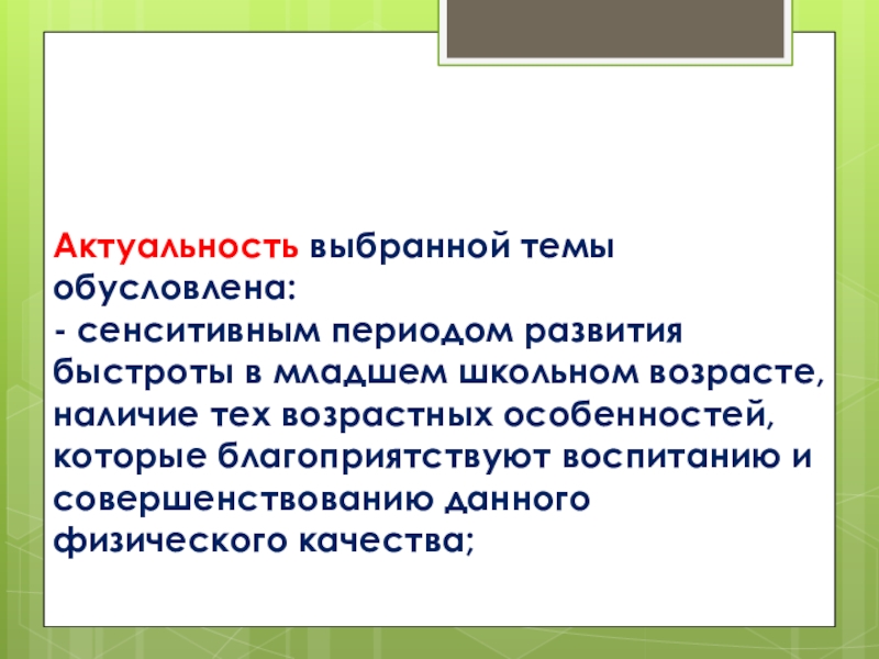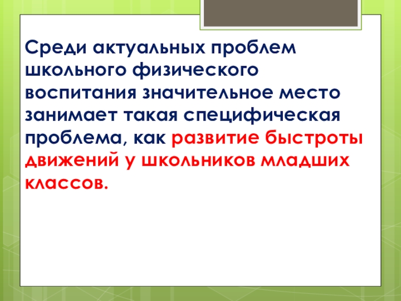 «Особенности развития быстроты у детей младшего школьного возраста»