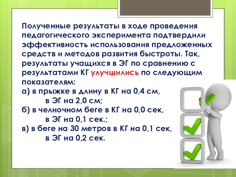 Слайд 16Полученные результаты в ходе проведения педагогического эксперимента подтвердили эффективность использования предложенных