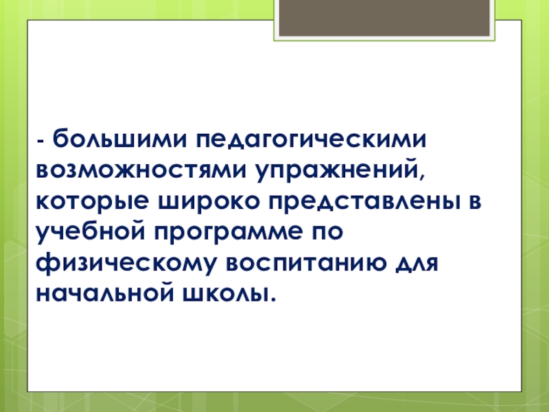 Слайд 4- большими педагогическими возможностями упражнений, которые широко представлены в учебной программе