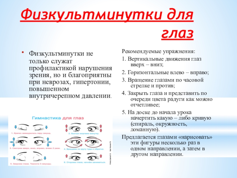 Предлагается глазами «нарисовать» эти фигуры несколько раз в одном направлении, а затем в другом направлении.