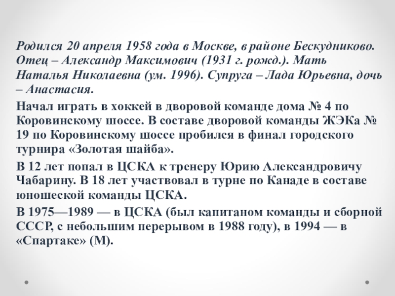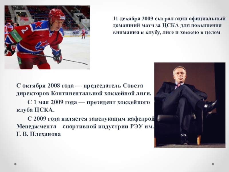 11 декабря 2009 сыграл один официальный домашний матч за ЦСКА для повышения внимания к клубу, лиге и хоккею в целом