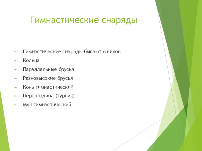Гимнастические снаряды бывают 6 видов