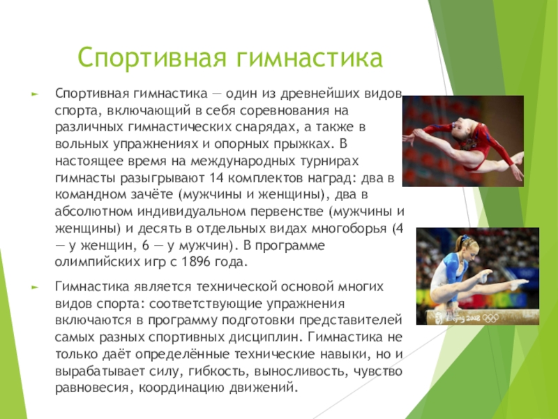 Спортивная гимнастика — один из древнейших видов спорта, включающий в
