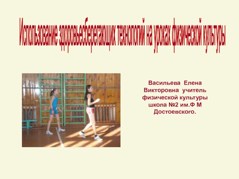Использование здоровьесберегающих технологий на уроках физической культуры Васильева Елена Викторовна учитель физической культуры школа №2 им.Ф М
