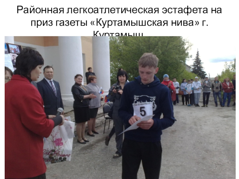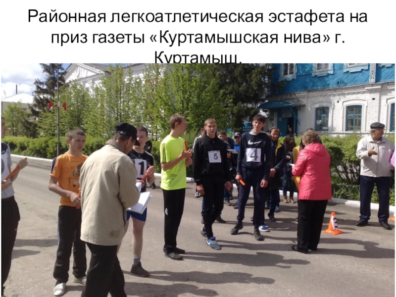 Слайд 33Районная легкоатлетическая эстафета на приз газеты «Куртамышская нива» г. Куртамыш.