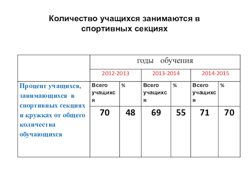 Слайд 5Количество учащихся занимаются в спортивных секциях