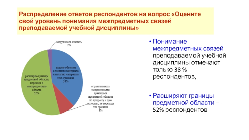 Понимание межпредметных связей преподаваемой учебной дисциплины отмечают только 38 % респондентов,