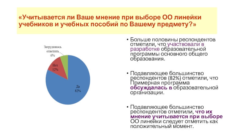 Подавляющее большинство респондентов отметили, что их мнение учитывается при выборе ОО линейки следует отметить как положительный момент.